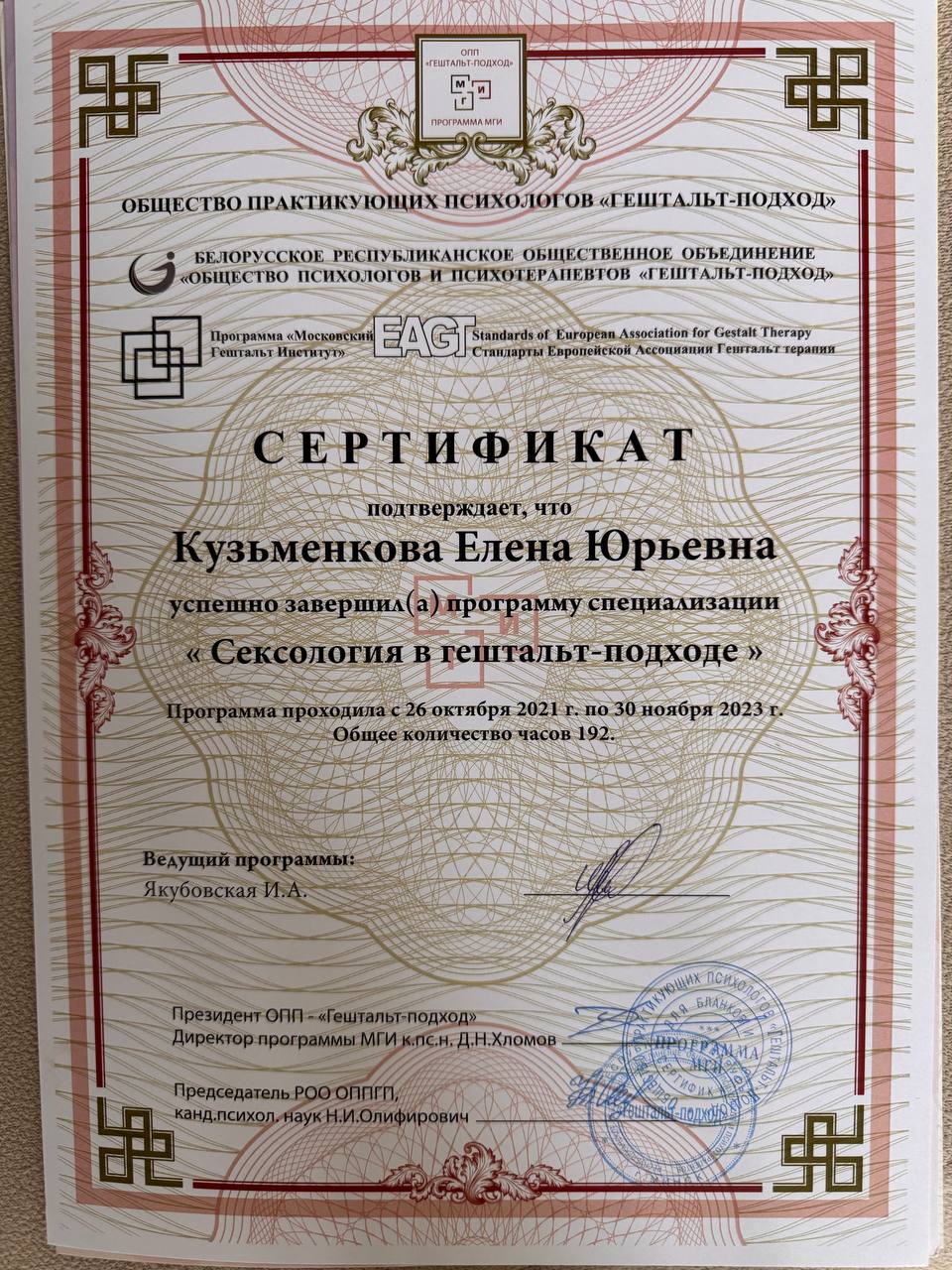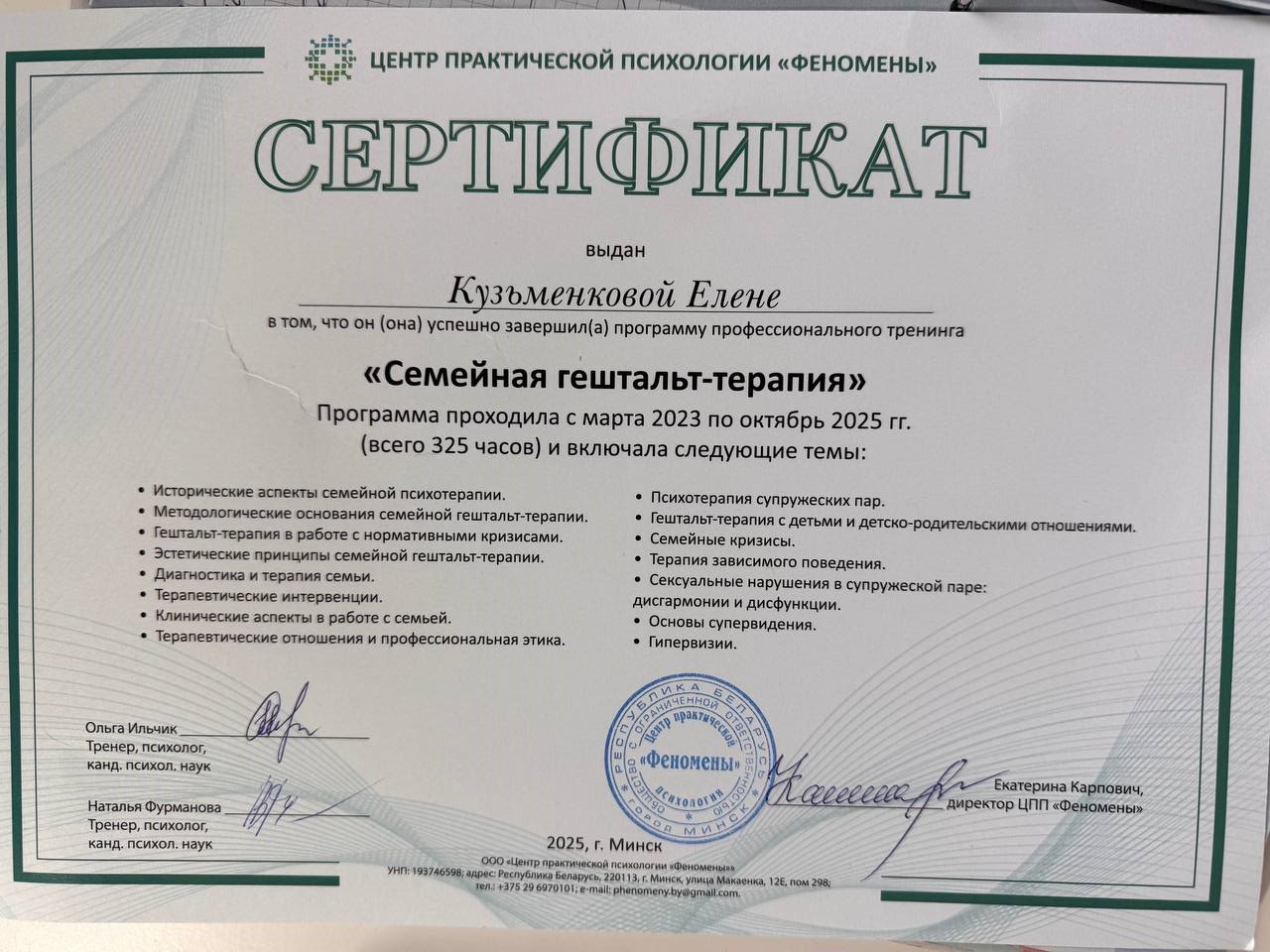 Я медицинский психолог, гештальт-терапевт. Живу в г. Гродно, работаю очно и онлайн. Стаж консультирования — более 10 лет. Мне 45 лет, я замужем 27 лет и я мама взрослого 25-летнего сына.